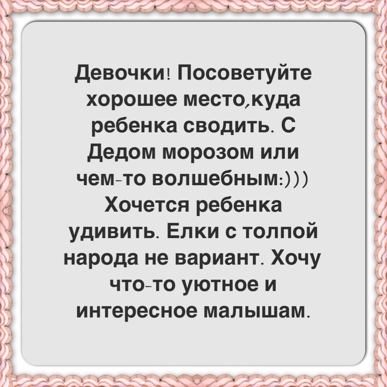 А сколько лет ребенку? Для каждого возраста свои развлечения.В нашем городе проводят разные МК (шоколадоварение или выпекание пиццы), но это для деток от 4 лет, скорее. А совсем малышам (от 1.5) предлагаются театральные выступления.Еще есть химический музей с интерактивным баром. Или квесты новогодние с головоломками. Это уже от 6 лет.У вас не указан возраст.