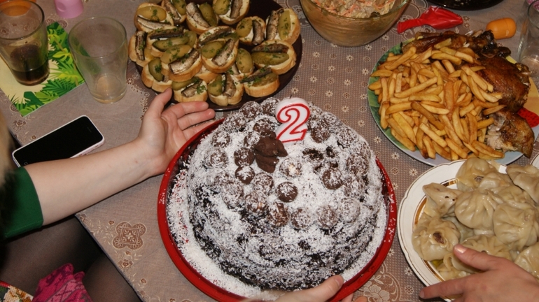 Поздравляю! Вы большая молодец при нехватке времени столько сделать!!!А тортик из чего? Сами делали? Очень аппетитно смотрится...