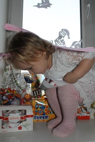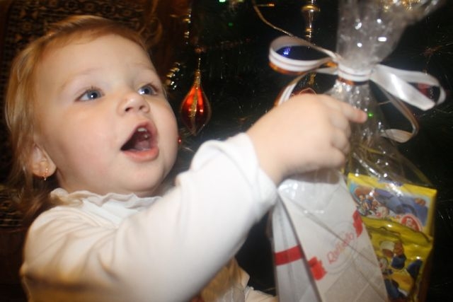 Снегурочка понравилась Арише, а вот от деда мороза она шугалась))) хоть и принес он ей подарок)