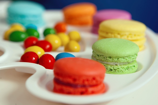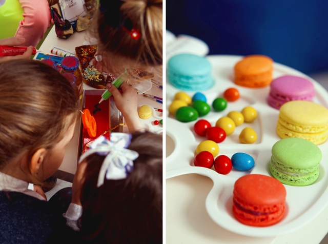Если праздник предполагает высокий темп и все угощения должны быть съедены сразу же, я использую миниатюрный кендибар. И хотя бы одно из угощений - "удивительное". Здесь это палитры с красками.