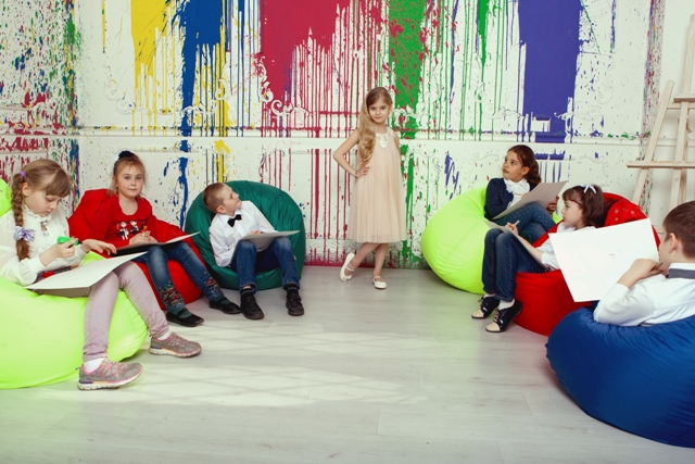 И я придумала интерактивную фотосессию, отражающую творческие интересы именинницы. Дети на этом фото не позируют фотографу, они рисуют! Позирует лишь именинница своим друзьям - быть моделью одно из ее увлечений. А потом все портреты она получит в подарок и сделает у себя дома импровизированную выставку.
