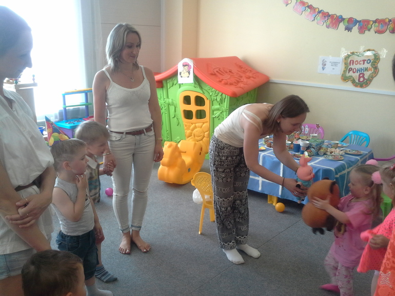 А вот и главные герои. Знакомятся с именинницей и гостями.