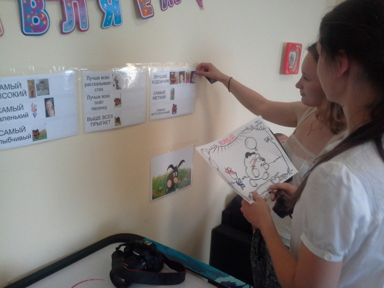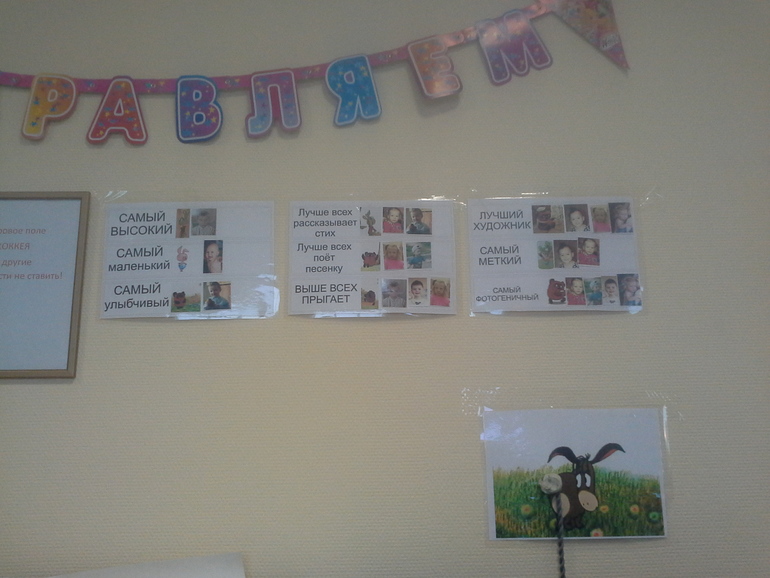 Для неумеющих читать ориентироваться в столах можно было по цвету скатертей)