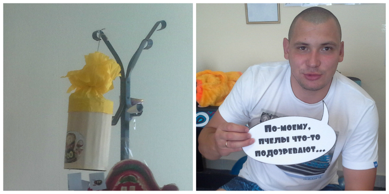 А, точно, у пчёл. А злые пчёлы говорят, что дадут мёд, если детишки их развеселят…будут вовсю играть-резвиться-вечселиться…