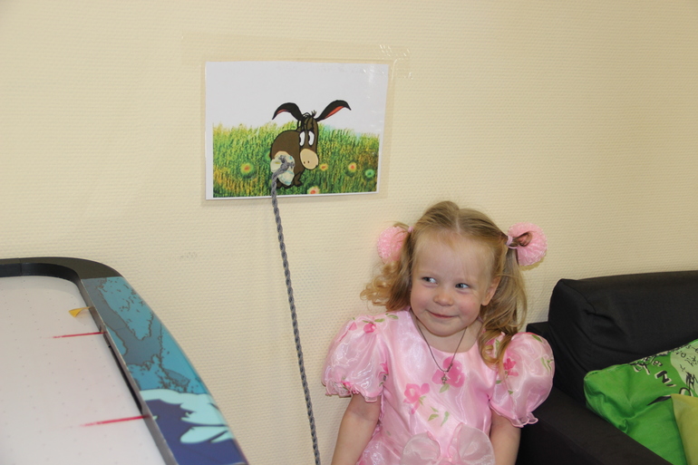 Тем более у именинницы и футболка в тему, и ружьё для Пятачка имеется)