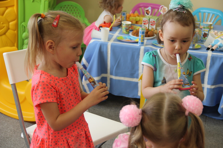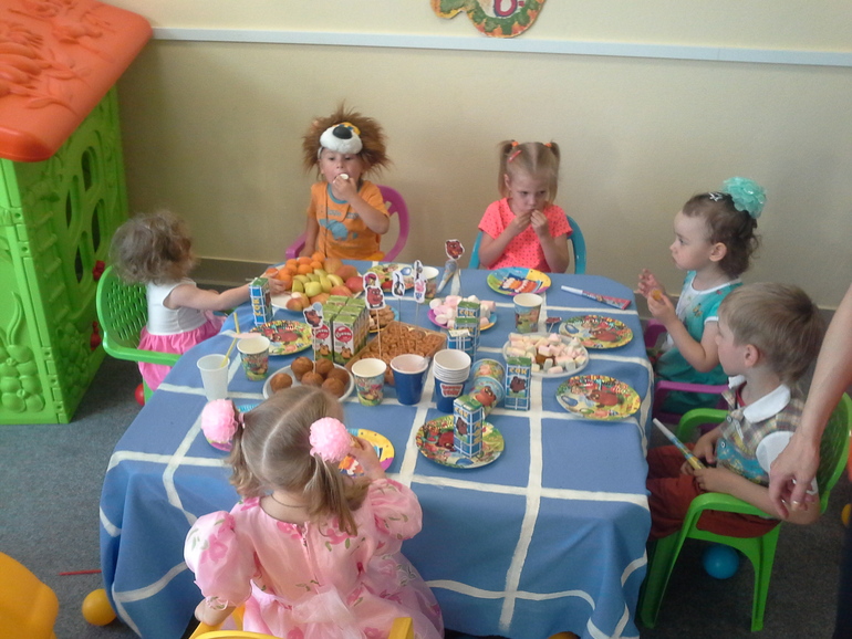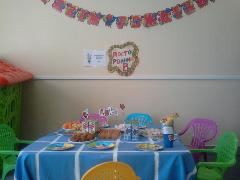 На полянке накрыто 2 стола. Один Пятачок организовал. Это тот, что с категорий «0+».