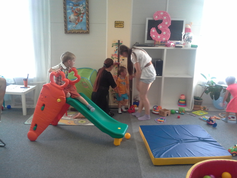 Пройдём полосу препятствий через родительские ноги, минуя горку и бассейн с шариками