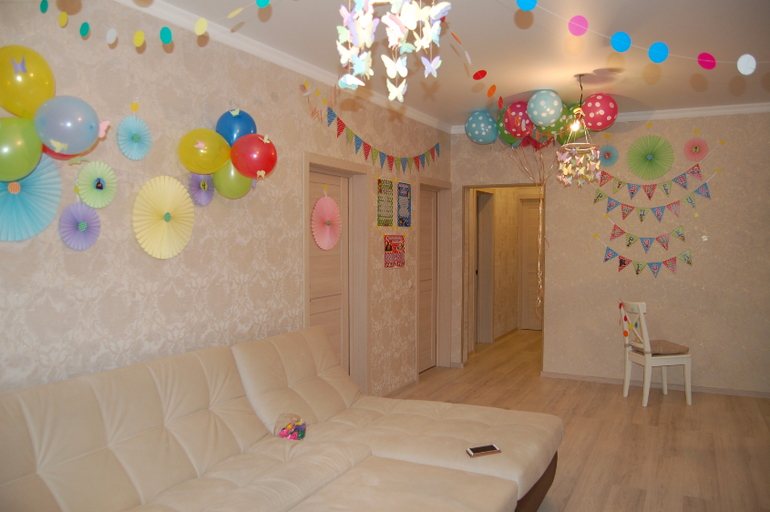 Спасибо:) Сама делала. Гирлянда: вырезала кружочки и прострочила на машинке. Бабочки: нашла трафарет в интернете,,перерисовала и вырезала. Потом тоже прострочила на машинке.