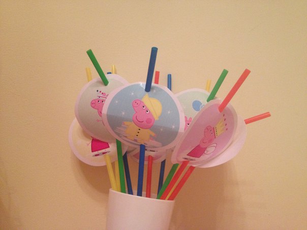 На трубочки:(клевые, дочь ими с удовольствием играла дома....и дилила кому какую...а вот на природе в пластиковых стаканах не пошли....не удобно(((((( хотя дома на годик с другим оформлением шли на ура)