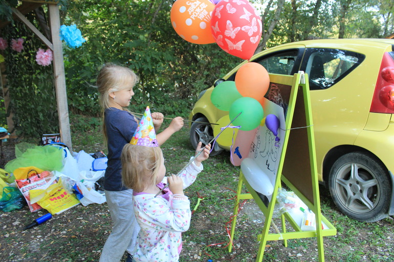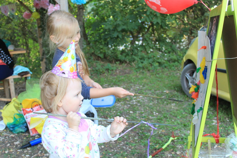 А вот дальше...племяшку стало тяжело увлечь конкурсами....рыбалка пошла)))....ну и за ней следом моя именинеца....Еле уговорила))) дав карту и попросив помочь именинеце выполнить задания....чтоб узнать где призы: