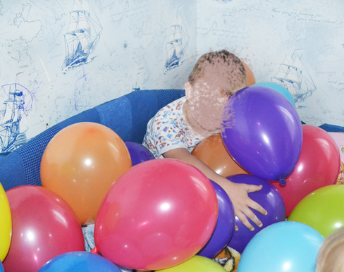 Утром Гришенька проснулся радостный,в комнате его ждали много шариков всех цветов радуги.