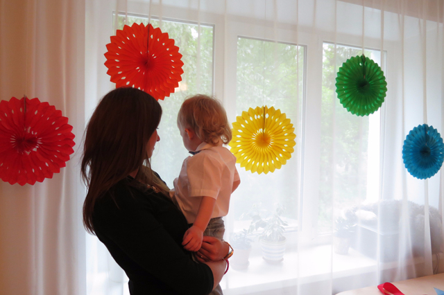 Красота, тоже планирую 2 года в стиле радуги) А ято такое у вас на шторах? веерные круги? сами делали? или покупали?