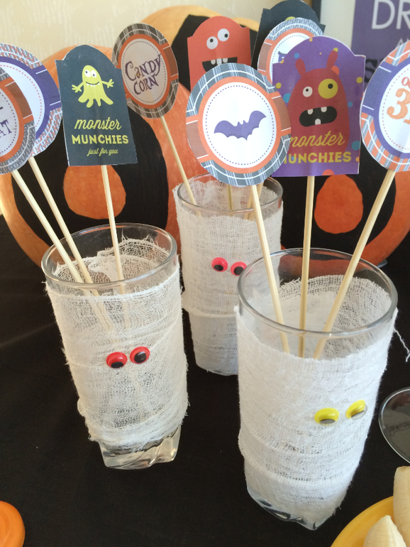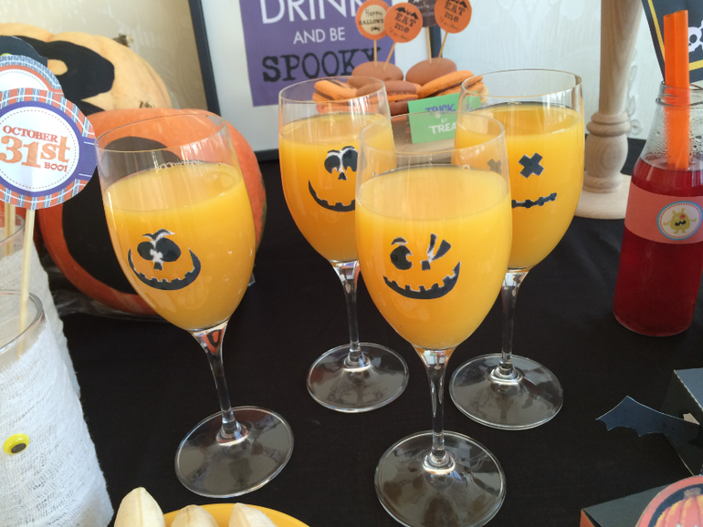 Принарядила мордочками бокалы, налила апельсиновый сок. А-ля тыквочка готова.