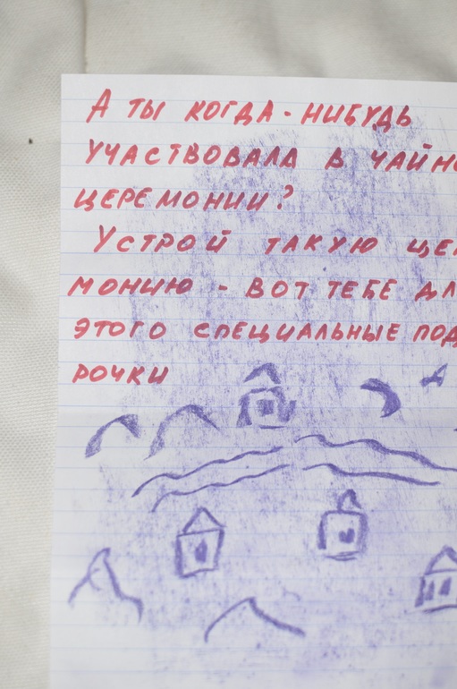 для чайной церемонии использовали стекляный чайник, чашечки для саке))и самое важное-заваривали связанный чай-цветок,который при заваривании распускается и превращается в необыкновенную красоту.приятного китайского чаепития))