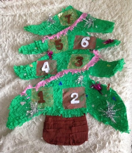 Как делала лист ватмана А4 вырезала елку и обклеили гофрированной бумагой, сверху на степлер кармашки с цифрами(3 и 4 местами бы поменять но не буду)