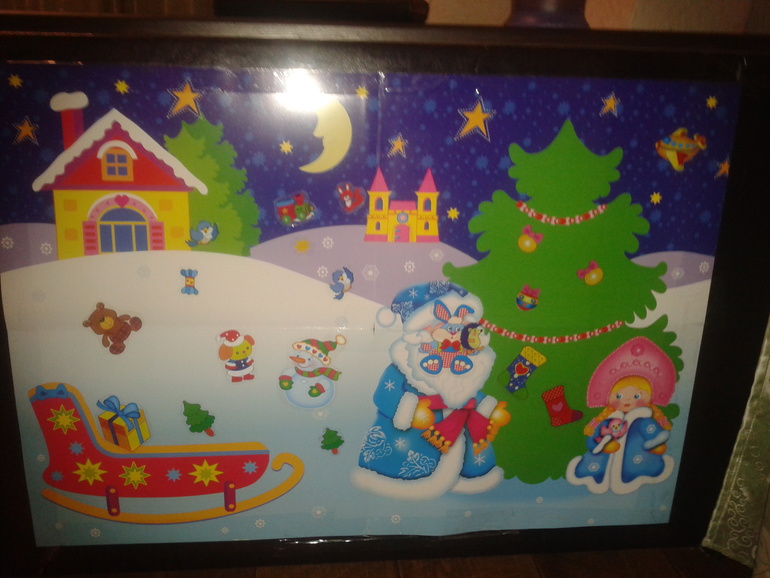 Доделываем бороду Деду Морозу, клеим цифры к ленте.