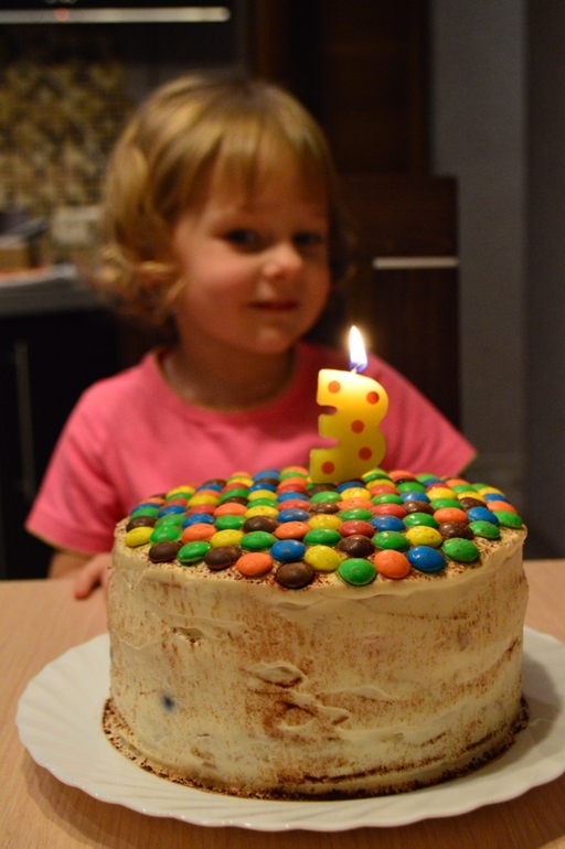 Украшение было незамысловатое, но абсолютно детское, что дети и подтвердили, объев весь m&m's)) Свечку задували, конечно же, неоднократно)