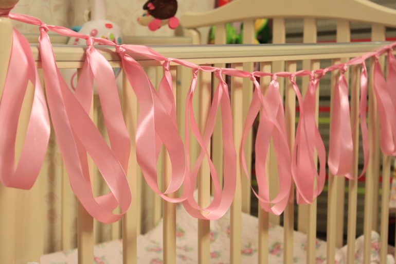 И над столом - облачко из фатина и гирлянды из объёмных сердечек (прошивала на машинке)