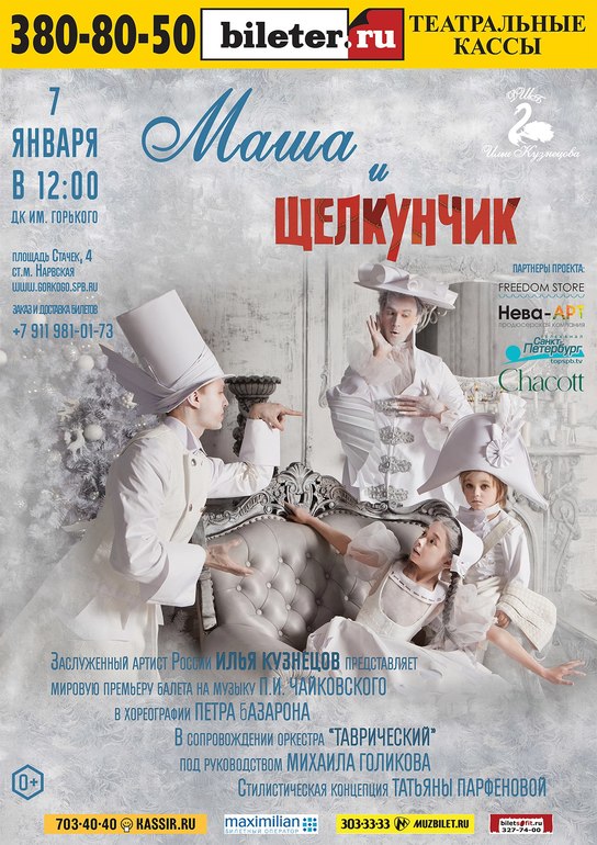 Новый ГодНеобычная постановка спектакля, которая завораживает и после которой многие дети пришли в школу балета Ильи и Кузнецова и теперь сами участвуют в этом чуде)