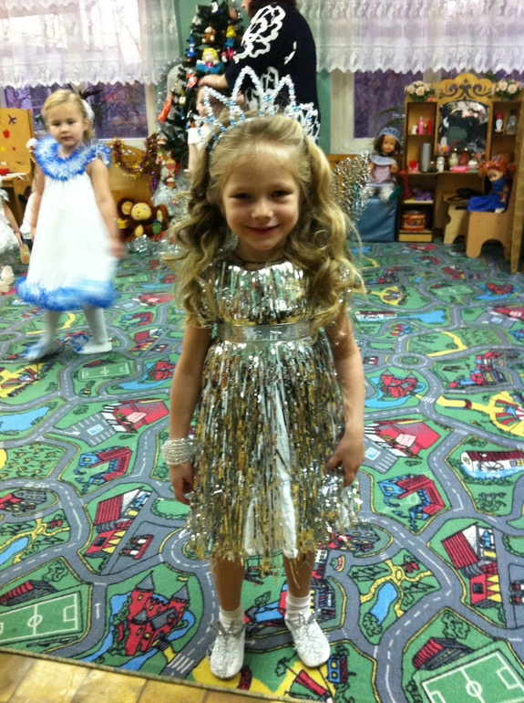 Сначала был вариант купить пышное белое платье, обшить его бисером и всякими блестящими штуками. Но мне казалось, это больше похоже на снежинку. А нужно то льдинка...