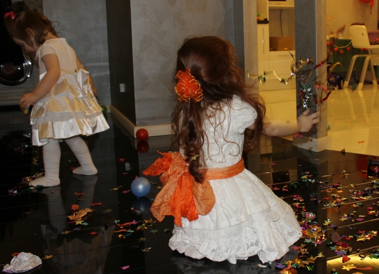 Ну, и в конце вечера дети стали распаковывать подарки именинника...