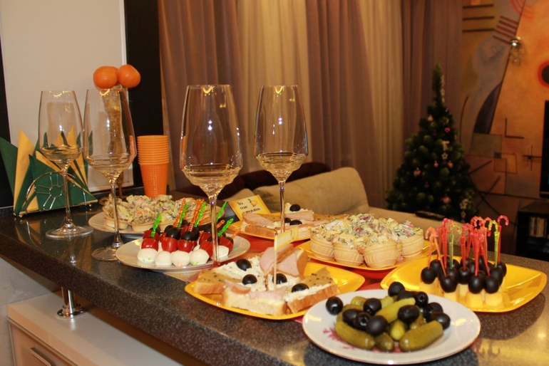 Стол для взрослых на детские дни рождения всегда делаю очень простой - только легкие закуски и шампанское.