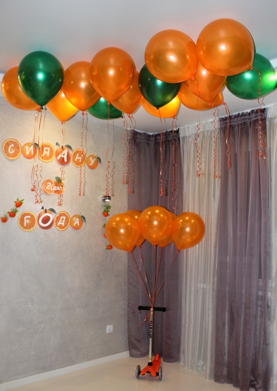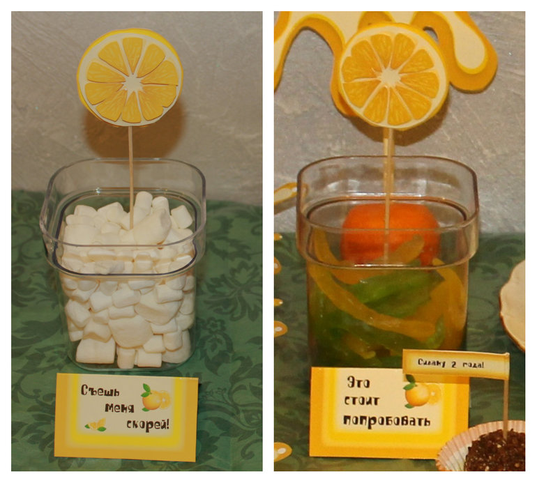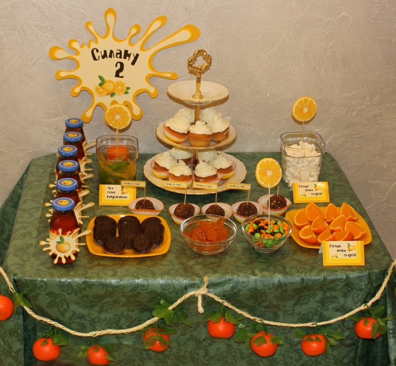 Растяжку в виде флажков я не хотела, поэтому распечатала на цветном принтере фото разных апельсинок.