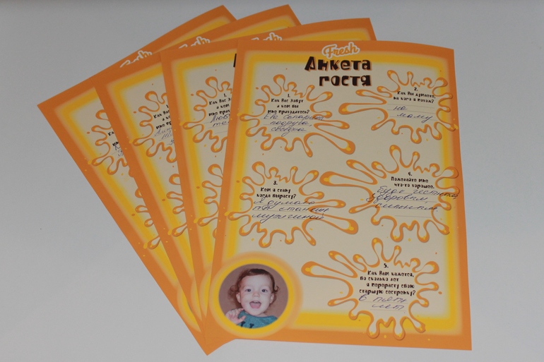 Гостям раздавали анкеты с несколькими вопросами, надеюсь, что сыну через много лет будет интересно почитать.