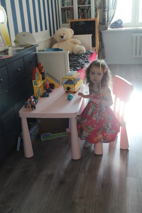 Именинница с утра ещё полусонная за распаковкой подарков.