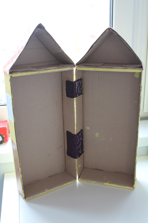 Внутри делаем "ремонт" при помощи скрап бумаги и прочих материалов - и используем домик для тематических игр в дальнейшем!