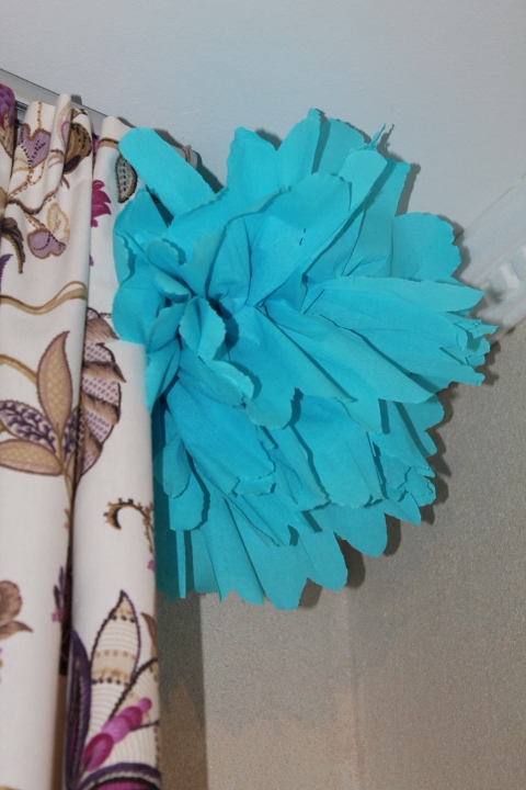 Из гофрированной бумаги сделала четыре шара под цвет одежды семейства Свинов: красный, голубой, синий, оранжевый. Идея была такая