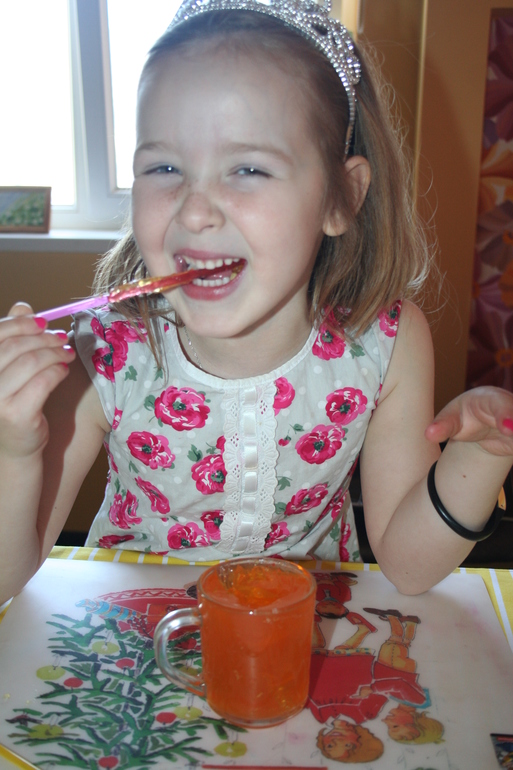 Не обошлось у нас и без розыгрышей. Вчера в ИГ подсмотрела легкую идею и тут же воплотила в жизнь: сок-желе. Даже муж попался на удочку, чего, уж, о Ками говорить :-)