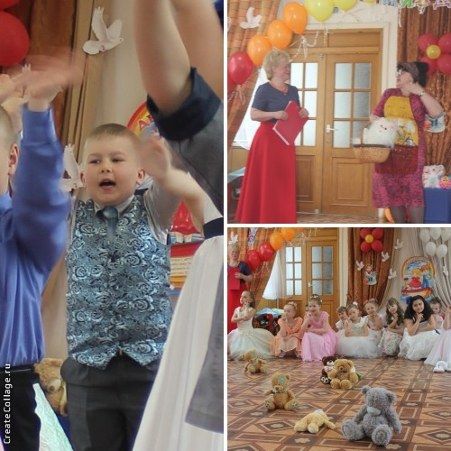 Праздник начался в 15.30. А перед этим встав рано, рано, мы погнали за тортом и пирожными, которые были заказаны в кондитерской. а дальше сборы, потом мальчики мои со свекровью к моей маме домой, а я в сад. Там мы как и в остальные дни репетировали, украшали зал, накрывали столы. Потом привезли букеты...