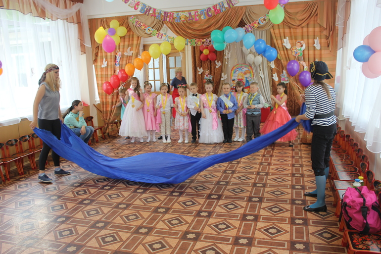 Аниматоры в это время крутили детишкам из шаров собачек, цветочки и шпаги.