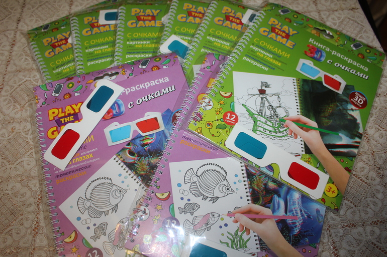 А также книги-раскраски с 3д очками. мальчикам с кораблями, а девочкам с морскими обитателями.