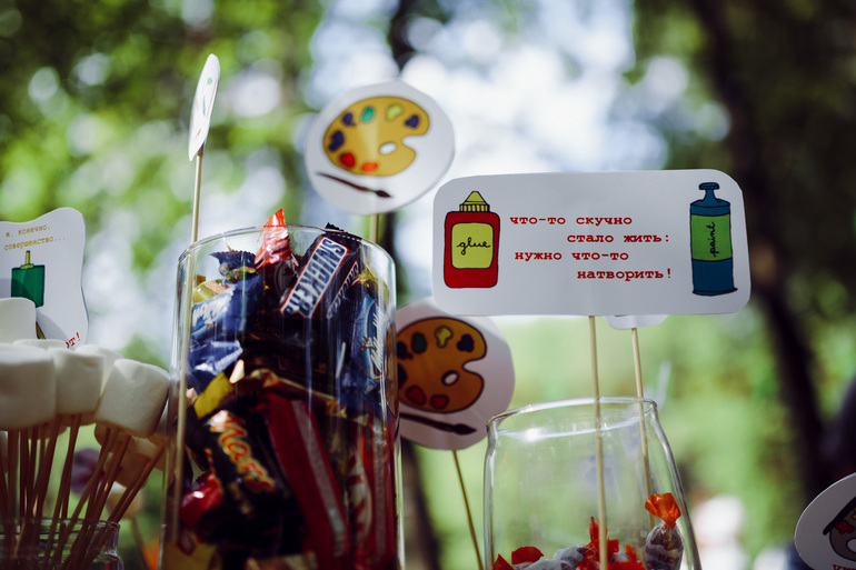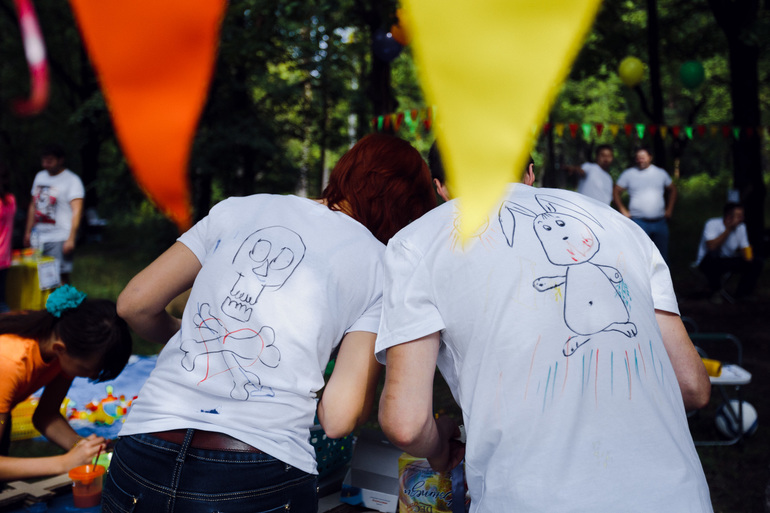 В общем, футболки разрисовали, постепенно все гости облачились в белый дресс-код, можно креативить дальше!