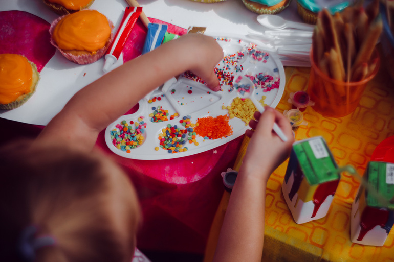 А тема опять нашла нас сама, поэтому в этот раз день рождения проходил под кодовым названием РомАльки-арт-пати и был очень творческим и красочным в прямом смысле этого слова :)