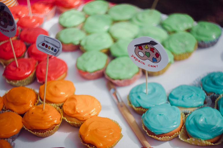 А так как творчество должно быть во всем, то украсить их предлагалось гостям самостоятельно - с помощью фигурных посыпок и пищевых карандашей :) Детям процесс очень понравился!
