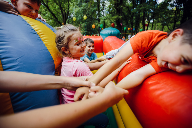 Не смогли мы в этом году обойтись без батута :) Потому что он, как выяснилось - одно из ярких воспоминаний с предыдущего праздника, в том числе и у Алинки! А желание именинницы - закон :)