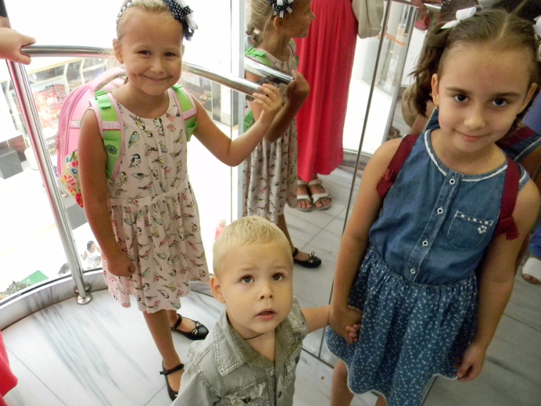 В этом году детей на линейку выводили родители, вернее один из родителей, у нас это был папа. Мы пришли в класс в десятке первых, т.к. школа граничит забором рядом с нашим домой, идти 30 сек.