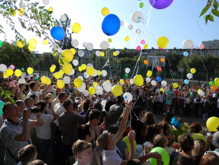 На шары мы сдали по 100р, один шар ребенку, один шар родителю. Ничего не приносили сами, в классе шары нас уже ждали. Вот цветы купили с вечера, был ужасный ажиотаж на рынке, я брала чтобы не разориться.