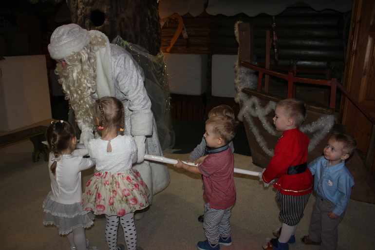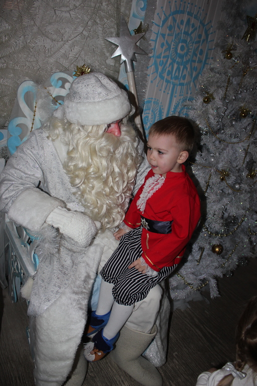 Посидели на коленках у деда Мороза, рассказали стишок, правда на своем языке, но вспомнили и слова по типу папа, мама, дом и т.д.