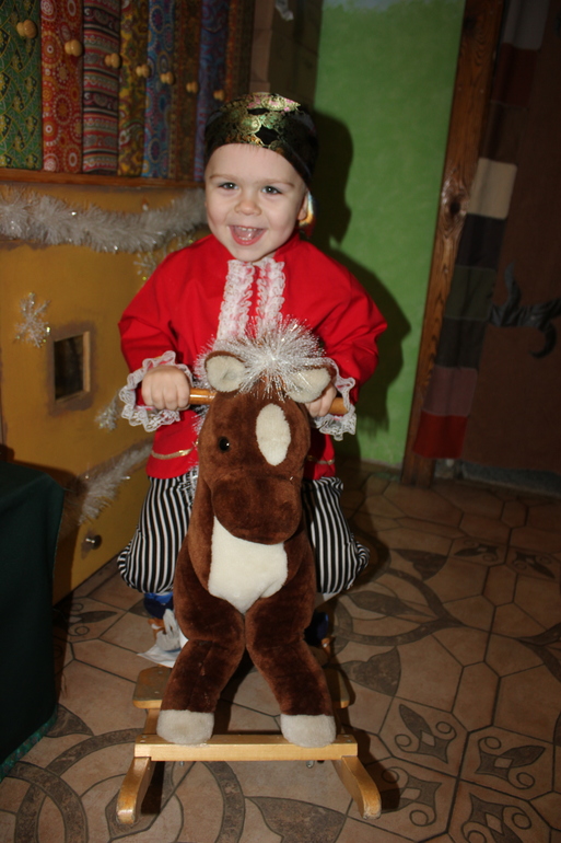 И с лошадкой расставаться так жаль... но я соблазнила Темика дедушкой Морозом и елочкой в огоньках.