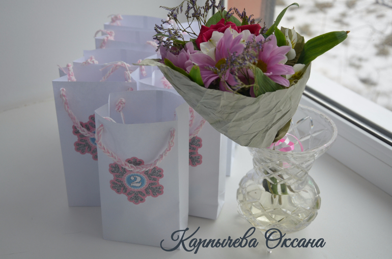 Коротко расскажу о своем оформлении и приготовлению к нашему празднику))) Чуть позже расскажу все подробнее. На празднике были только близкие родственники и крестные родители. Полиграфию я делала сама в фотошопе, цифра техникой торцевания, снежинки из пенопласта покупала в виде заготовок и потом украшала блестками. Скатерть сшила из запасов простыней, а снежные потеки- это украшалка на окна, заказанная на али и покрытая серебряным акрилом. Сани для конфет - покупала заготовки для игрушек из фанеры в фикс прайсе, покрасила гуашью и приклеила ленту из страз. Белые ветки и старую плетеную корзину красила обычной масленой краской. Трубочки и юбочки для кейксов тоже брала на али. Белые кулечки для подарков гостям делала из обычной офисной бумаги и вязаных крючком ручек (внутри были печеньки-снежинки). Все развлечения были связаны с зимней темой и именинницей, например нужно было слепить на скорость снеговика (из воздушных шаров, рисованных глаз, ротика, морковки, ручек) вместе с именинницей, было вытягивание обещаний (гости вытягивали листики, говоря перед этим "Я обещаю" и там было написано продолжение предложения связанного с именинницей). Потом передавали под музыку большую снежинку нарисованную и вырезанную из плотной бумаги, когда музыка останавливалась, гость, у которого снежинка была в руках, отрывал ее лучик и на обратной стороне было написано задание (например поцеловать именинницу, нарисовать с ней рисунок, рассмешить и т.д. и т.п.) Дочь как и мама очень любит рисовать, поэтому всем гостям выдавала маленькие листики для рисования любого гостя, потом все вместе пытались угадать кто же там нарисован)))) Еще была игра в больших мужских перчатках на скорость открыть конфетку и накормить другого участника, так же была телеграмма, которую гости должны были дополнить прилагательными, не зная самого смысла текста - получилось очень прикольно))) Платье и кедики покупала в h&m, потом украсила платье пайетками, сделала повязку на голову и пояс к платью. Из сладостей начала с ледяных кристаллов на палочке, их растила недели 2, потом сделала мастичные снежинки для украшения сладостей, далее на очереди шли печенья, украсила их белковой глазурью, присыпкой и снежинками из мастики (кстати ее делала из зефирок), и уже за день до праздника приготовила сливочные кексы, кейк-попсы, по опыту прошлого года с тортом решила не возится, из-за отсутствия времени, поэтому заказала просто не украшенный розовый торт и уже сама его довела до готовности все теми же снежинками и присыпкой.