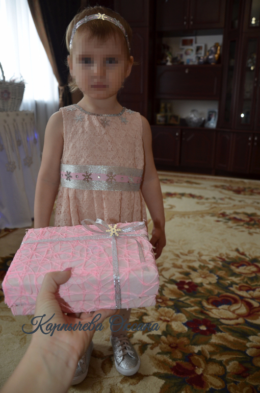 Так как это была пора нового года, то я решила купить дочери снежный наряд после праздников, когда они уже будут не актуальны и будут скидки)))) Но ничего подходящего по образу найти не смогла, тогда я купила самое обычное платье в h&m и милейшие сверкающие кедики, украсила платье пайетками, сделала пояс к платью и повязочку на голову
