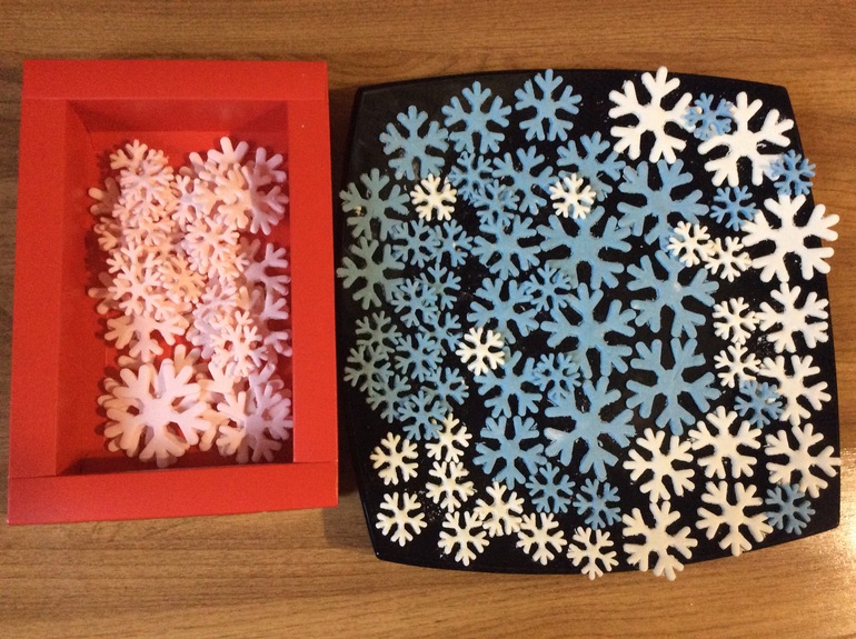 Далее сделала мастичные снежинки, мастику делала по этому мк тут вырезала снежинки вырубками заказанными на али