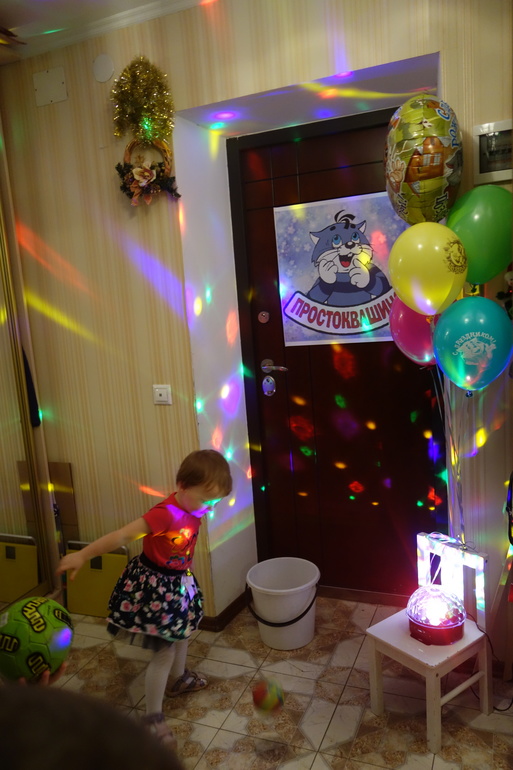 День рождения ДетскийИдея провести день рождения по мотивам мультфильма "Зима в Простоквашино" родилась больше года назад, когда готовились к 5-летию сына, даже тематические шарики купили.Но тогда я столкнулась с 2-мя проблемами: много гостей-мало места в квартире и аниматоры предлагали готовые образы и программы, я со своим Простоквашино была никому не интересна.