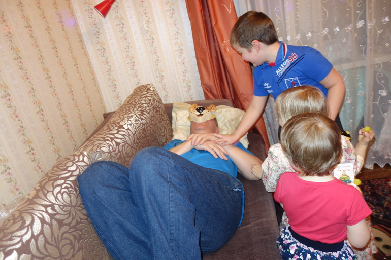 Игра "разбуди Шарика" (маска тоже ждала своего часа с прошлого года)
