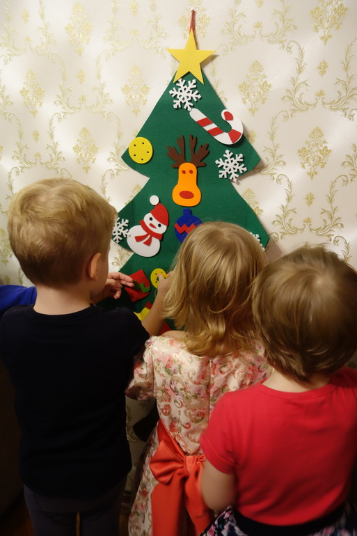 Наряжали фетровую елочку (ну в Простоквашино же тоже наряжали старыми вещами)
