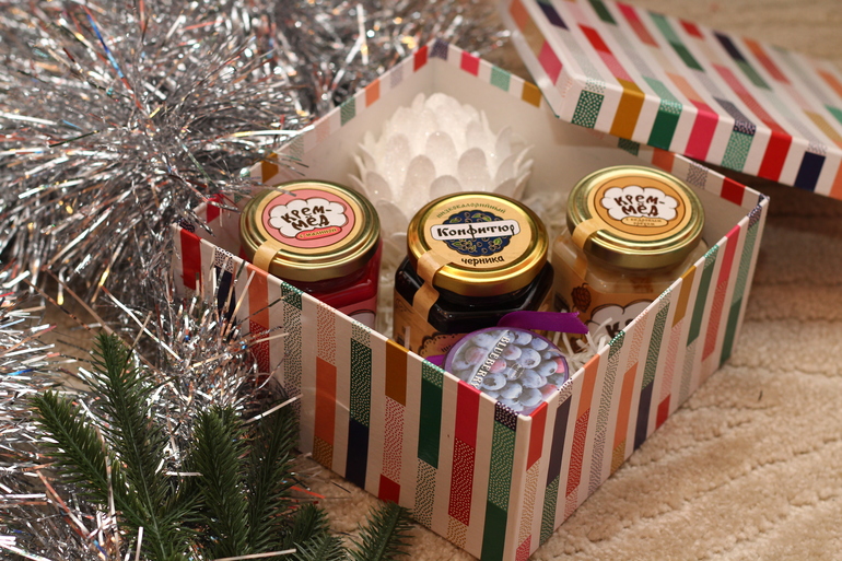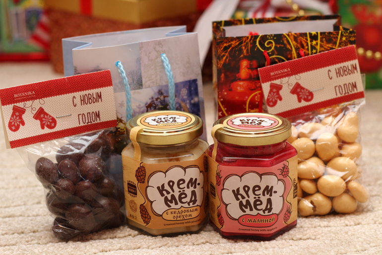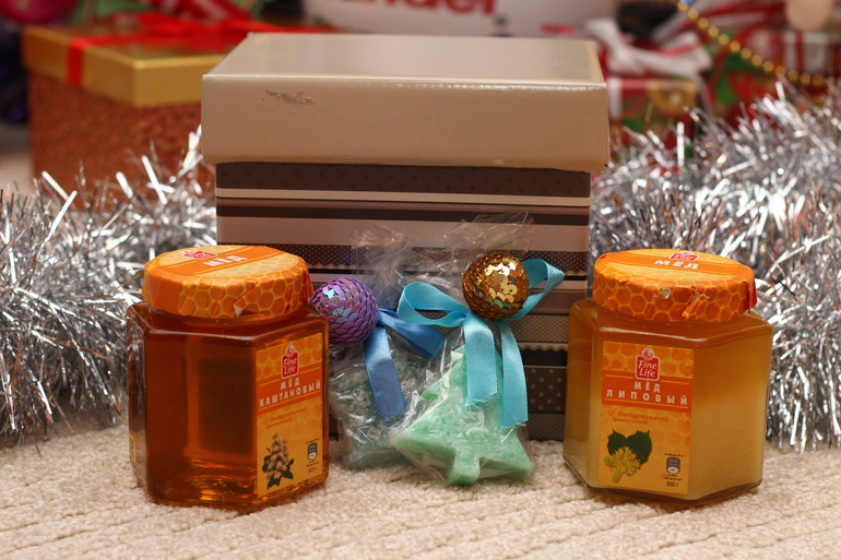 Покажу что нынче у меня внутри - в этом году я придумала для всех в подарок мёд. Друзьям, которые любят всё изысканное - приобрела мёд-суфле, также молодым родственникам символические наборчики с мёдом...